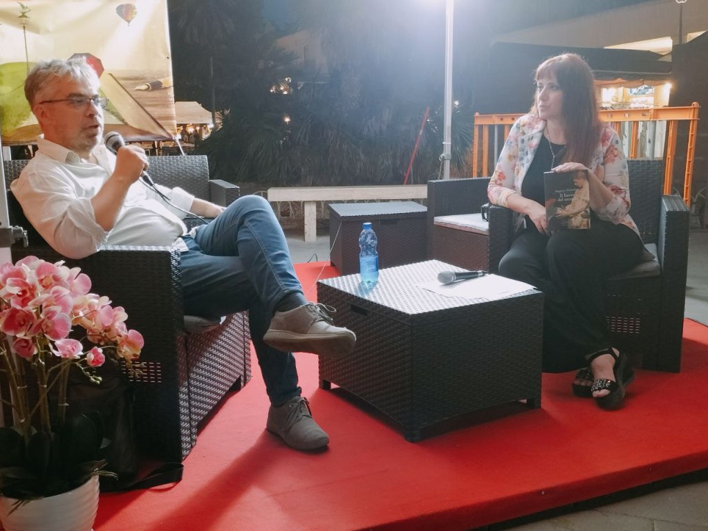 Ancora una presentazione in un luogo del romanzo. Il porto di Ostia, dove Terenzio sbarca dopo il suo lungo cammino attraverso l’Italia settentrionale, e dove tornerà più volte. Nella cornice del salotto letterario di Piazza Anco Marzio, il 6 luglio, l’intervista di Elisa Palchetti ha introdotto la discussione sul romanzo, sulle sponde che videro salpare soldati e mercanti verso tutte le rotte del Mediterraneo.
